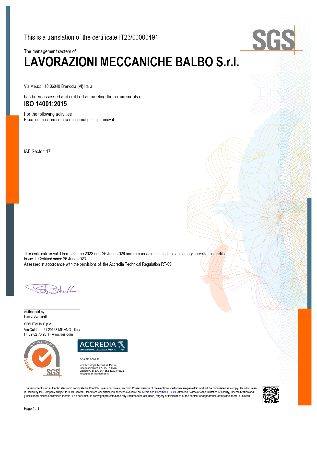 Tale impegno è comprovato dalla certificazione ISO 14001, che attesta l’adozione di un sistema di gestione ambientale rigoroso volto a ridurre l’impatto ecologico delle attività produttive. Ogni giorno, ci dedichiamo alla continua riduzione dei consumi energetici, alla gestione dei rifiuti e al miglioramento delle lavorazioni, con l’obiettivo di limitare la nostra impronta ambientale.